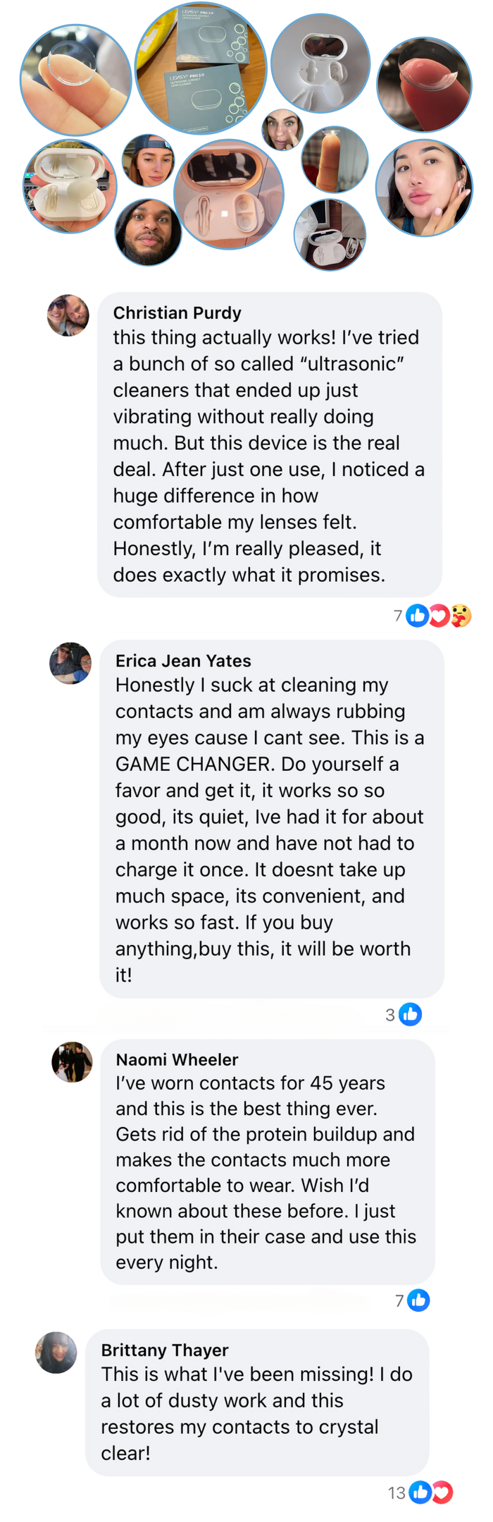 Many users report that Lensy keeps lenses fresh and comfortable for their full lifespan, reducing the need to replace them early. Instead of tossing lenses before 30 days due to discomfort or buildup, Lensy’s ultrasonic cleaning restores clarity and comfort, making your lenses feel like new after every clean.